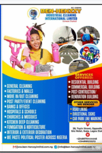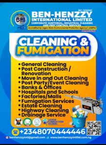 Ben–Henzzy International Limited remains a recognized force in corporate janitorial services, industrial cleaning, and pest control, powered by German-trained professionals and accredited by LASEPA. Its consistent delivery of safe, hygienic, and environmentally responsible services continues to set benchmarks in the industry.