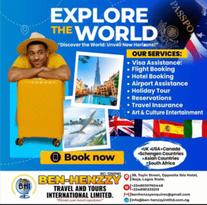 A key arm of the brand, Ben–Henzzy Travel and Tours International Limited (RC: 1250161), serves as a gateway to the world. Guided by its promise to “Elevate Your Travel Experience,” the travel subsidiary offers: